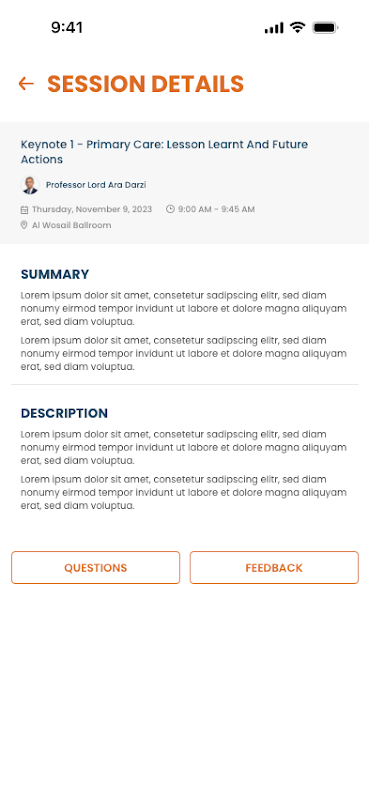 Anda boleh melihat maklumat yang berkaitan dengan agenda, penceramah, bengkel, pempamer, poster, rakan kongsi dan penaja. Anda boleh bertanya soalan, menghantar mesej, memberikan maklum balas dan menerima berita dan kemas kini terkini tentang persidangan.