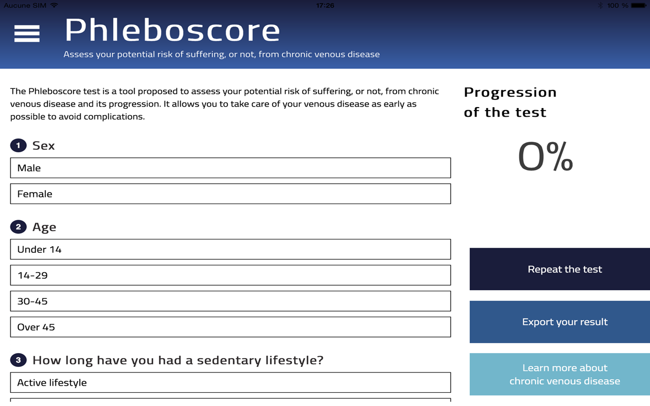 Phleboscore assesses your risk of suffering, or not, from chronic venous disease