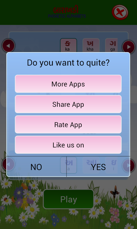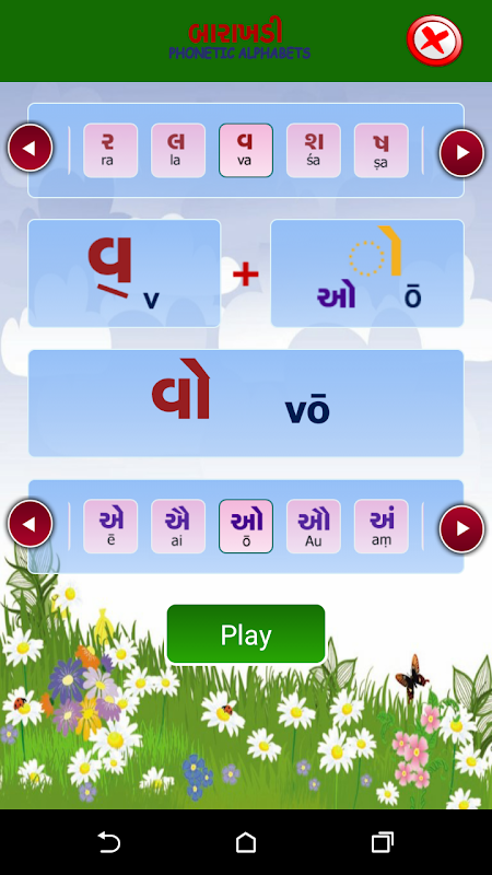 The app works by teaching children the sound of a particular alphabet and how it is blended with another vowel or consonant to make a word. For example, the consonant M (મ્) represents the sound M and the vowel Aa (આં) represents the sound Aa. When Ma and Aa are blended together they give birth to a new word Maa. (મ્ + આં=માં) (M + Aa = Maa)