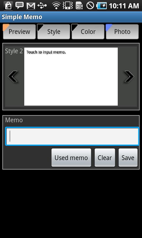'Simple memo' app is a Widget application which is similar to Post-it to write message on and put it onto Homescreen. 'Simple memo' 's strong point is that changing option and putting message is very easy.