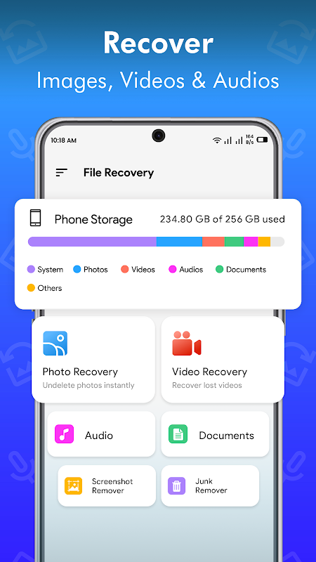 Pemulihan Fail - Pemulihan Foto memudahkan proses pemulihan fail anda yang baru dipadamkan. Dengan satu ketukan butang imbasan, apl mencari peranti anda secara automatik, mencari dan memulihkan video yang dipadam dan fail yang hilang. Anda berada dalam kawalan—pilih untuk memulihkannya serta-merta atau padamkannya secara kekal.