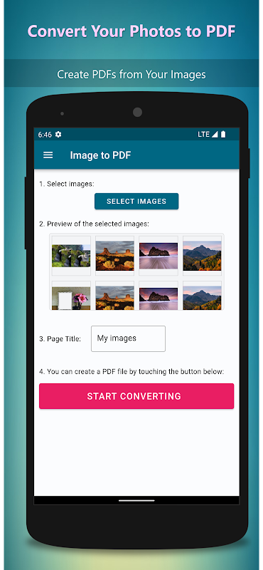 Apl ini direka bentuk untuk mesra pengguna, menjadikannya mudah untuk digunakan oleh sesiapa sahaja. Hanya pilih foto atau imej yang ingin anda tukar, pilih tetapan yang anda suka, dan ketik "MULAKAN MENUKAR" Dalam beberapa saat sahaja, imej anda akan diubah menjadi fail PDF yang boleh anda simpan ke peranti anda atau kongsi dengan orang lain.