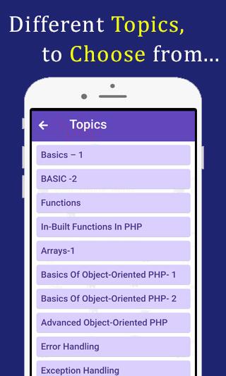 Aplikasi ini sangat mudah digunakan dan telah direka dengan sangat hati-hati dengan mengingati keperluan pelajar. Apabila pelajar / pengguna membuat kesilapan, permohonan itu menunjukkan dan juga menunjukkan jawapan yang betul. Ambil ujian Program / kuiz PHP berulang kali dan analisa hasil anda yang lebih baik setiap kali.