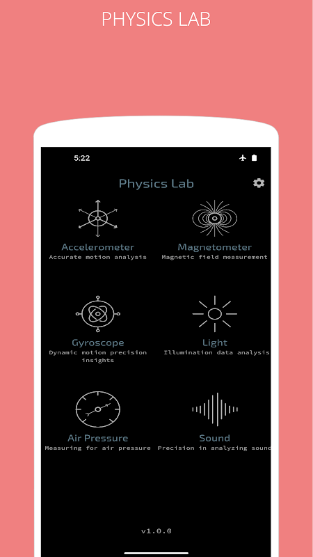 Makmal Fizik ialah aplikasi Sensor semua-dalam-satu yang memberitahu anda entiti fizikal di sekeliling anda seperti pecutan, medan magnet, keamatan cahaya, desibel bunyi dan banyak lagi...