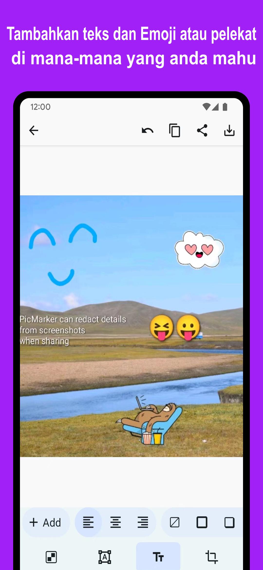 PicMarker juga termasuk pelbagai fungsi anotasi pratakrif yang berkuasa, yang boleh menambahkan anotasi pada foto dengan mudah untuk menyerlahkan dan menambah maklumat penting dalam gambar. Sebagai contoh, anda boleh menggunakan anak panah berganda untuk menambah maklumat jarak pada gambar, gunakan fungsi kaca pembesar untuk membesarkan butiran kecil pada gambar dan sebagainya. Jika serlahan ciri yang dipratentukan tidak mencukupi, ia juga boleh menambah teks dan pelekat! Selepas menambah anotasi, anda juga boleh memotong gambar secara berkadaran dengan saiz yang diperlukan pada perisian sosial, dan terus berkongsi foto yang ditanda kepada perisian lain. Selain itu, PicMarker juga menyokong menyimpan gambar bertanda ke mana-mana folder pada peranti.