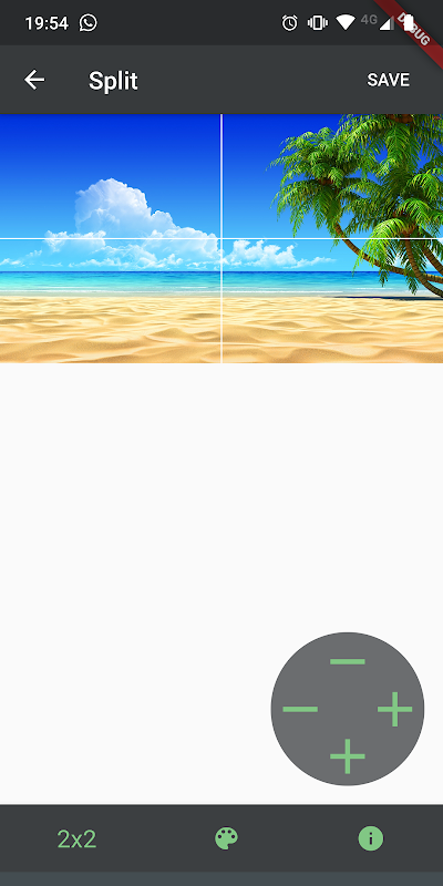 * Split: allows you to split or separate an image into different parts, as if it were a grid, defining the rows and columns.