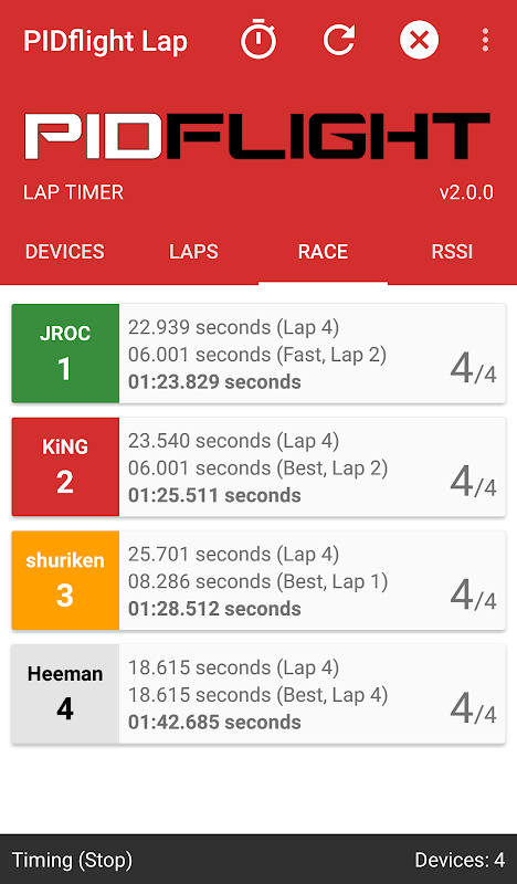 PIDflight Lap adalah aplikasi teman untuk PIDflight Masa pusingan peranti (VTX) dan perkakasan serasi.