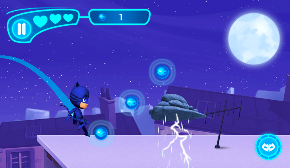 Help your favorite PJ heroes, Defeat villains with Catboy, Owlette and Gekko! Choose your favourite hero and start your adventure through the PJ Super Mask Starlight Sprint. collect coins with which you can unlock new heroes and abilities! Catch the villains and collect the items they have been stealing, BUT make sure to look out for any traps they might have set..!
