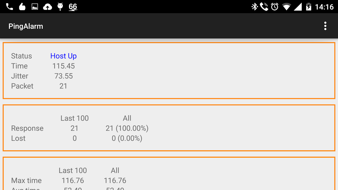 How it works: PingAlarm sends 2 packets every second and shows you all statics it collects