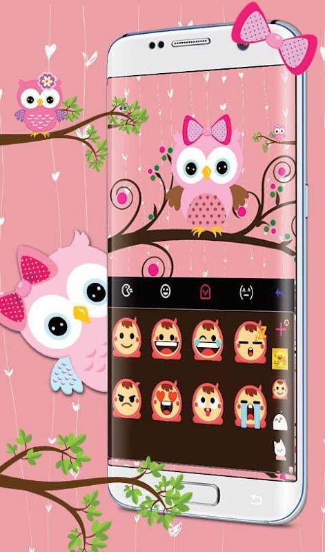 New Free Pink Bow Owl keyboard theme for TouchPal Emoji Keyboard. Typing fun!