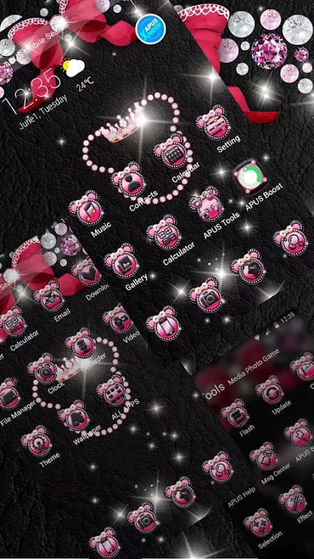 Pink Mickey Diamond-APUS Launcher temaBebas, indah, gaya untuk Android, tema ini khusus dirancang untuk APUS Launcher. Ini tema Android termasuk unified icon pack HD, wallpaper yang indah dan membantu membuat telepon anda pribadi dan bergaya.