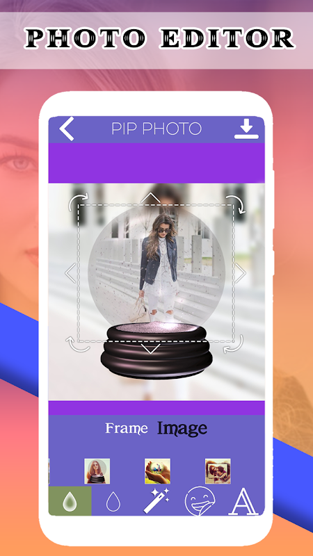Pip editor foto kamera & aplikasi terbaik dengan kesan kilauan untuk menjadikan foto anda lebih bergaya dan menarik dengan beberapa saat. "Kamera PIP" adalah "aplikasi gambar dalam gambar". Ia membolehkan anda meletakkan gambar di dalam gambar untuk membuat penampilan yang bergaya. Ini dapat dilakukan melalui bingkai aneh, objek sehari-hari seperti kamera, TV, CD, atau botol minyak wangi. Selain itu, gambar di latar atau di latar depan dapat diedit dengan penapis yang berbeza. Aplikasi ini sangat sesuai untuk gambar selfie dan potret - anda boleh menggunakannya untuk membuat gambar dan kad ucapan kreatif.
