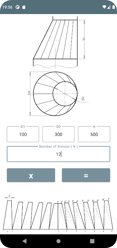 Ukuran transisi dan tikungan: Aplikasi ini memungkinkan Anda menentukan dimensi dengan cepat dan akurat untuk membuat transisi dan belokan dari pipa dengan diameter berbeda. Anda dapat memasukkan parameter yang diperlukan seperti diameter awal dan akhir pipa untuk mendapatkan nilai yang akurat untuk operasi pengelasan.