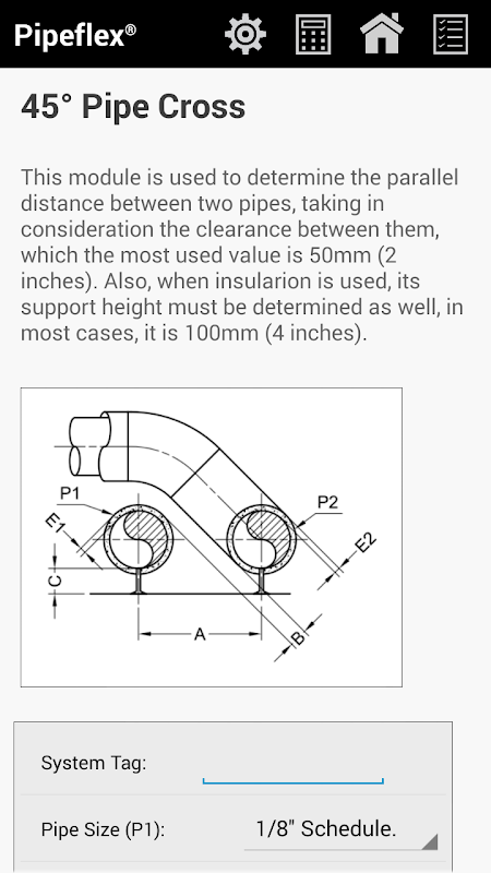 Aplikasi ini telah dibangunkan untuk membantu jurutera paip, pereka dan pelajar. Ia datang dengan modul berikut: