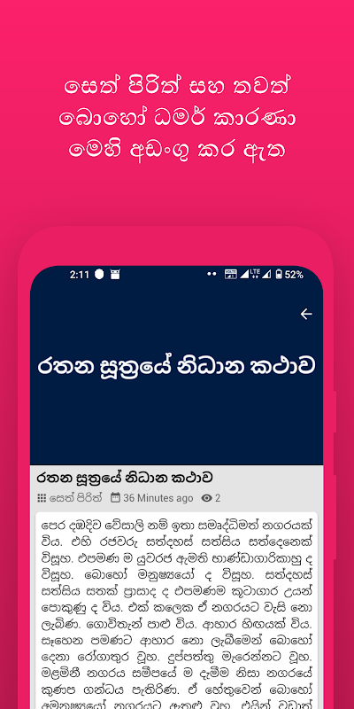 Aplikasi Pirith potha ialah buku pali pirth dengan penjelasan sinhala