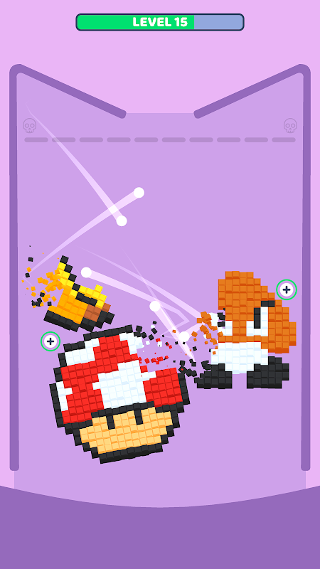 Luncurkan jari anda dan baling bola untuk merobohkan blok piksel.🤩