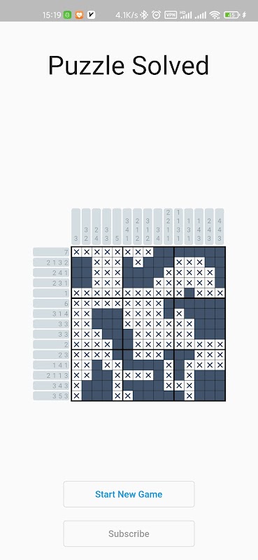 Normally, puzzles of this type turn out to be a meaningful picture of something once you've solved them. However, since this version generates the puzzles automatically, they will just look like random groupings of squares. Someone has suggested that this is actually a good thing, since it prevents you from guessing the colour of squares based on the picture, and forces you to use logic instead. The advantage, though, is that you never run out of them.