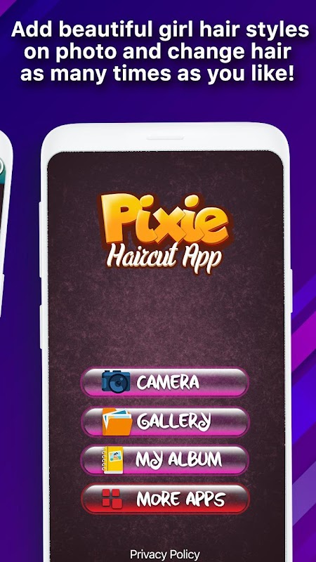 With this Pixie Haircut App ✂ Hairstyle Changer For Women you will have fashionable short pixie haircuts every time you want. This pixie hair editor and short hair camera app with a lot of pixie hairstyles for your face is easy to use app with incredible photo editing features. Take a selfie or upload photo from your device and edit it with our pixie hair app and short hair cut photo editor for girls. Select one of the pixie haircuts that you like the best and tap on it to try a hairstyle on your face. Use your fingers to move, rotate and resize hairstyle sticker to perfectly fit it to your face. Add frames to photos and apply photo filters to make your photo montage more unique and special. You can also add text to photos or even draw over picture. Use this hairstyle tester and pixie cut hair editor to try the latest short hairstyles for girls. Do not forget to save your new short hair photo montage on your device or share it with your friends or family.