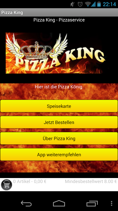 Wir begrüßen Sie herzlich zur Pizza King App.