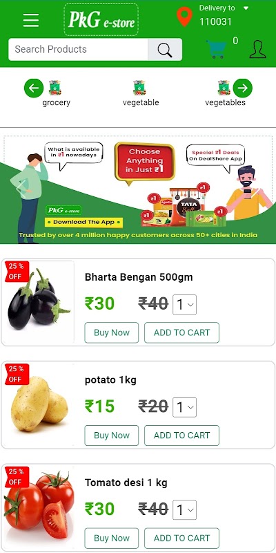 Ini adalah aplikasi pesanan sayur-sayuran dalam talian untuk orang Delhi NCR.