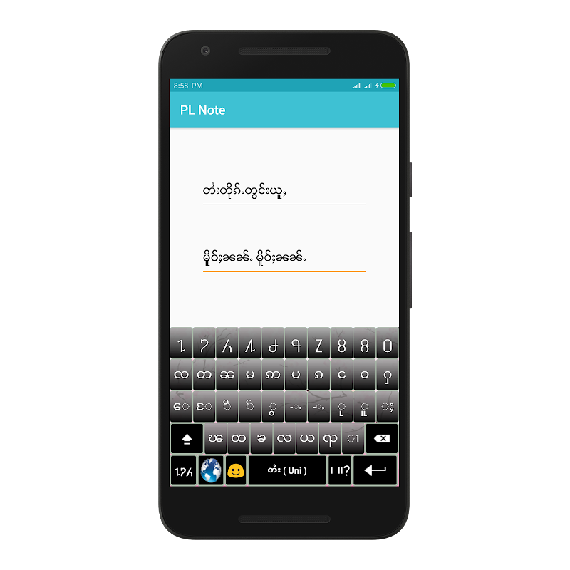 PL Note can write in Shan and Burmese without any fonts in Android device.