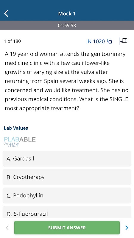 Platform kami dibangunkan dan diselenggarakan oleh pasukan profesional perubatan berpengalaman yang berpangkalan di UK. Semua kandungan pendidikan dibuat dengan teliti, disemak secara berkala dan dikemas kini secara berterusan oleh pasukan kami untuk memastikan ketepatan dan perkaitan. Untuk mengetahui lebih lanjut tentang kami, sila lawati: https://www.plabableformla.com/aboutus.