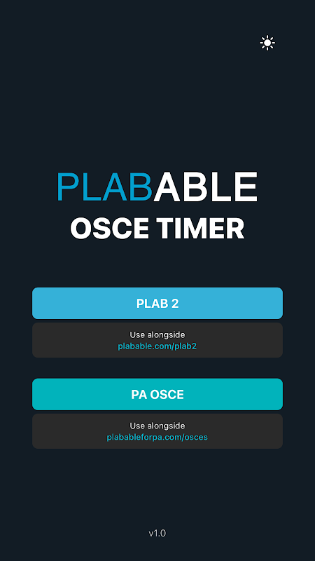 Amalkan peperiksaan PLAB 2 atau PA OSCE dengan Pemasa OSCE Plabable. Direka bentuk untuk mensimulasikan keadaan peperiksaan sebenar, apl mudah dan mesra pengguna ini termasuk pemasa terbina dalam untuk kedua-dua fasa persediaan membaca dan peperiksaan. Sama ada anda menyemak semula secara solo atau berlatih dalam kumpulan, Pemasa OSCE Plabable membantu anda kekal fokus dan sedar masa. Gunakannya bersama Permata OSCE Boleh Plab dan Permata PA OSCE Boleh Plab untuk membantu anda mengatasi peperiksaan.