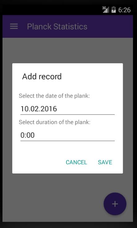 For effective implementation of the "Plank" exercise our app allows you to keep a record of the following data: