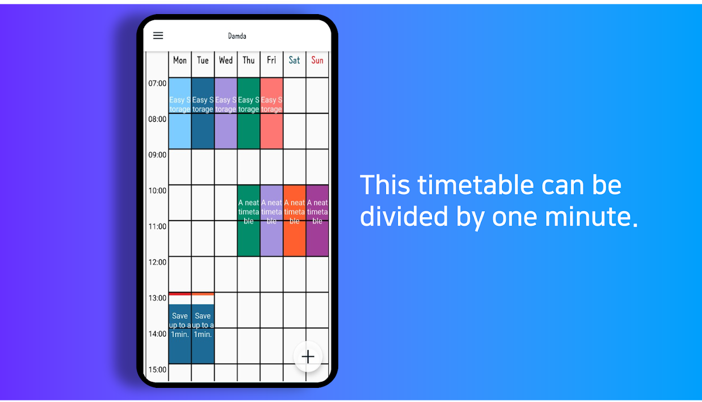 It is an app that pursues a study manager. It is a productivity app that provides a variety of functions such as timetable widget, memo, and TO-DO for easy schedule management. Together with the various functions of Damda, we will help you study sustainability.