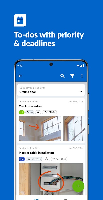 Dengan aplikasi tapak pembinaan kami, tugas baharu dan kecacatan pembinaan boleh didapati pada pelan digital atau model BIM dalam bentuk tiket. Ini boleh diletakkan dengan ketepatan milimeter oleh semua peserta projek yang diberi kuasa dan boleh ditambah dengan foto, teks, mesej suara dan dokumen. Mudah untuk berkomunikasi dengan jelas dan mengelakkan kesilapan dan salah faham.