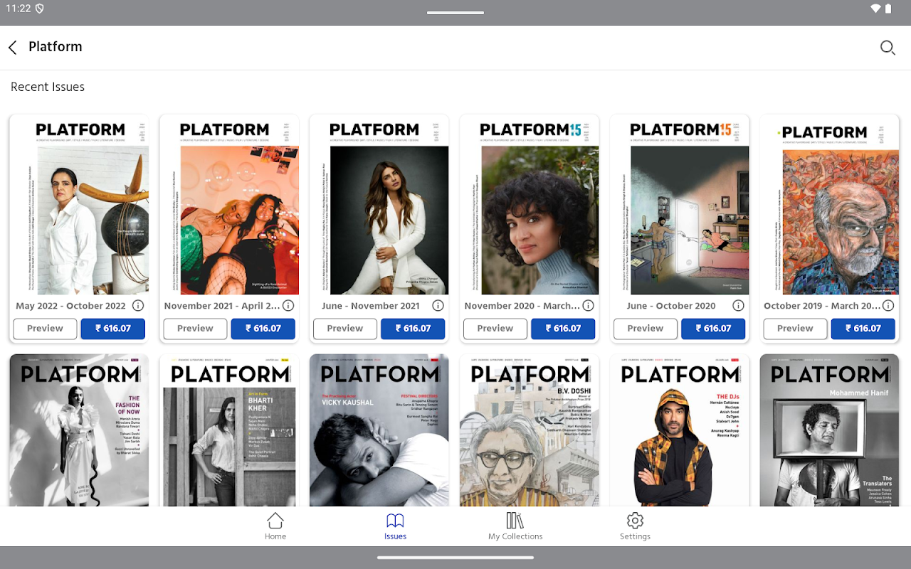 PLATFORM-Salah satu majalah seni kontemporari dan hiburan terkemuka India, Platform memulakan pemikiran dan meneroka industri kreatif. Kami berbangga dalam mempromosikan yang baru muncul dan memuji mereka yang mapan dari dunia seni, reka bentuk, fesyen, filem, sastera dan muzik. Ia adalah majalah di mana inovasi dan bahan bersilang melalui budaya popular. Melalui enam isu fokus kami, kami menyediakan pembaca kami kandungan yang kukuh dan reka bentuk canggih. ENAM ISU -Seni (Jan/Feb), Gaya (Mac/April), Kesusasteraan (Mei/Jun), Muzik (Julai/Ogos), Reka Bentuk (Sept/Okt), Filem (Nov/Dis). AGIHAN-Dengan cetakan edisi 30, kami telah diterbitkan sejak 30 tahun lalu. Platform diedarkan di seluruh negara oleh Living Media India Limited (India Today Group), tersedia di 30 bandar di kedai buku dan gerai surat khabar terkemuka