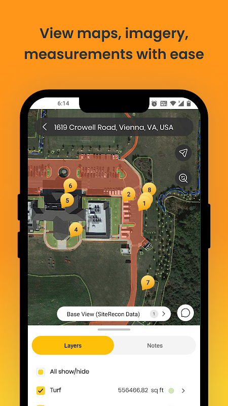 Dokumenkan maklumat tapak pada peta dan aksesnya pada bila-bila masa, di mana-mana sahaja dengan peranti mudah alih anda. Buat nota tentang keadaan tapak, peluang peningkatan atau isu perkhidmatan dan jadikan nota itu lebih berwawasan dengan menambahkan imej dan video. Tag rakan sepasukan anda dalam nota dan berkomunikasi dengan lancar pada peta. Eksport laporan terperinci sebaik sahaja anda melengkapkan lawatan tapak dan berkongsi dengan pelanggan anda. Akses SiteRecon berlepas secara percuma - semasa dalam perjalanan!