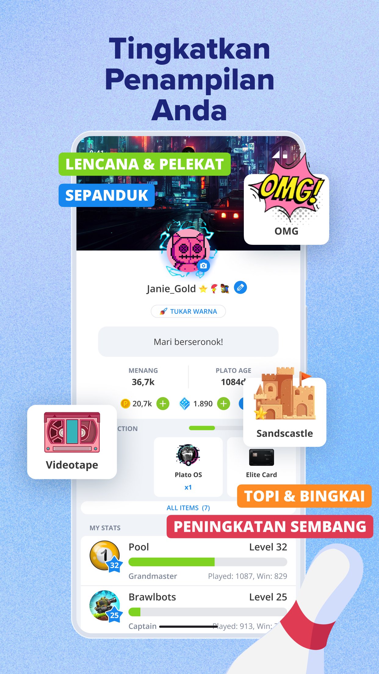 - Syurga Terperibadi: Peribadikan profil anda, tema sembang kumpulan, dan pengalaman permainan untuk menjadikan Plato 100% milik anda.