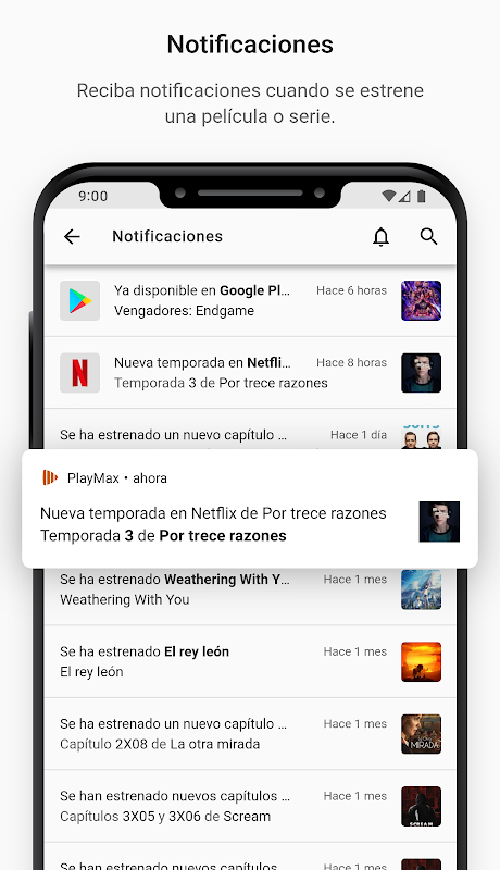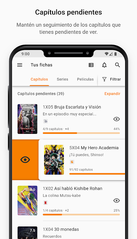 • Terima pemberitahuan apabila filem atau siri berada pada salah satu pembekal anda (Netflix, HBO, Filmin...)