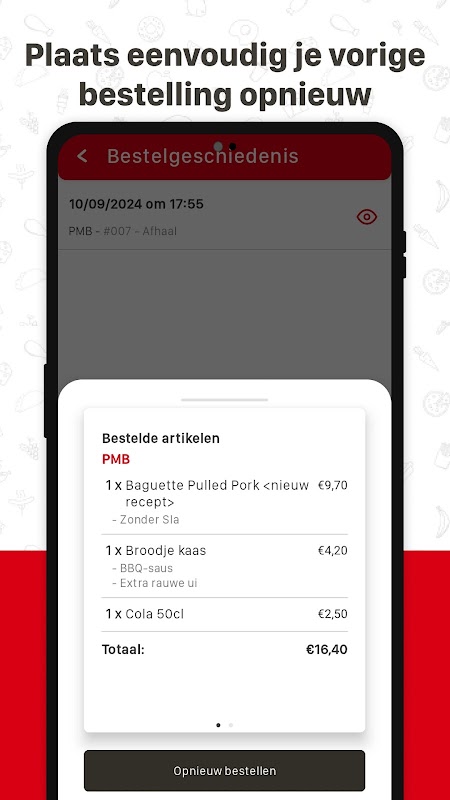 Melalui fungsi kegemaran atau sejarah pesanan anda, anda hanya tinggal beberapa ketik jari untuk membuat pesanan baharu. Sangat berguna!