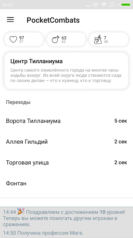 Pocket Combats RPG adalah permainan penggilingan tegar berbilang pemain dalam genre teks RPG.