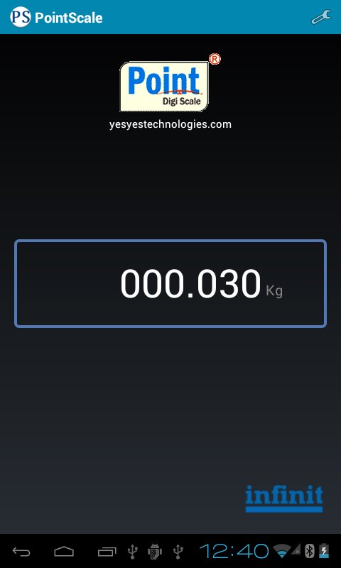Point Scale is an android app that can display weights from Bluetooth enabled weighing scales manufactured by YesYes Technologies.