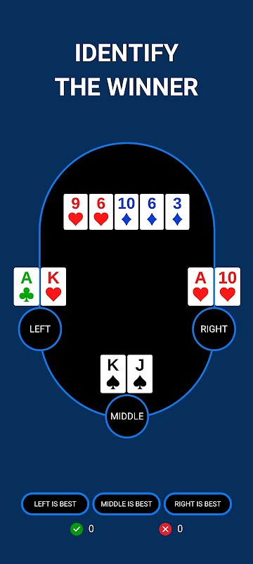 - Tangan Terbaik: Latih untuk memilih tangan terbaik daripada tiga tangan dan kenal pasti pemenang!