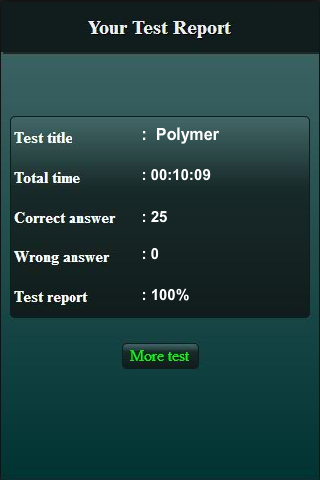 The application is very easy to use and has been designed very carefully keeping in mind the needs of the students. When a student/user makes a mistake the application indicates and also shows the correct answer. Take the Polymer Engineering tests repeatedly and analyze your improved results each time.