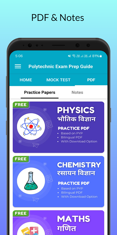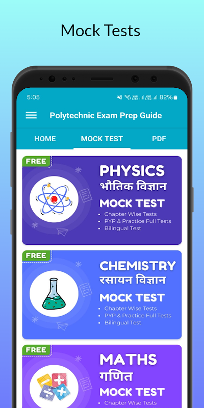 Dalam Apl Panduan Persediaan Peperiksaan Politeknik ini, Anda dapati Siri Ujian Olok-olok Politeknik dalam kedua-dua bahasa Hindi & Inggeris dengan jawapan menerangkan dengan terperinci penuh.