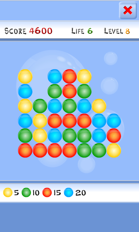 In this game you are facing grid of bubbles, which you need to remove to proceed to next level.