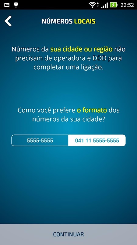 - Você pode escolher o formato dos números da sua cidade (com operadora ou sem operadora e DDD);