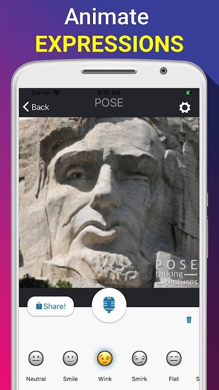 Buat gambar ceramah wajah dengan merakam mesej. Tukar ekspresi muka dengan menekan butang! Tambah pelekat lucu. Simpan ciptaan anda sebagai video dan hantarnya ke media sosial! POSE adalah aplikasi gambar bercakap yang paling utama.