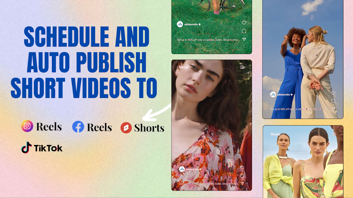 • Rancang dan jadualkan YouTube Shorts, video TikTok, Instagram Reels dan Instagram Stories dengan mudah.
