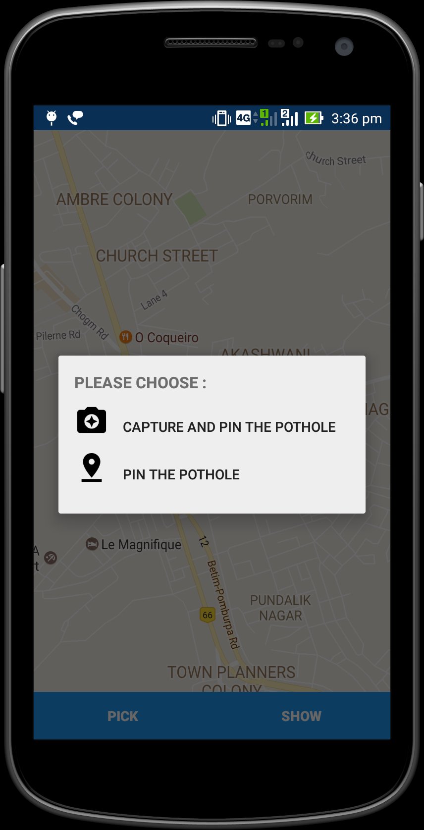 2.Also you can just pin the pothole without capturing it, if you are in a hurry.