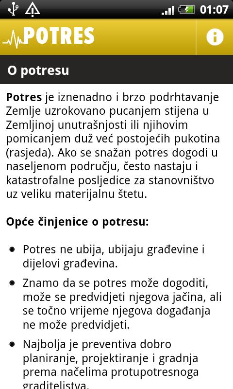 U aplikaciji Potres nalaze se prakticne informacije za samozastitu - sto uciniti prije, tijekom i poslije potresa
