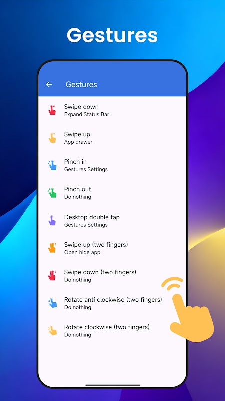 -- Anda boleh menetapkan gerak isyarat untuk operasi desktop, seperti Leret Ke Atas untuk laci apl, Cubit Masuk untuk pengeditan skrin, Dwiketik untuk membuka apl tersembunyi.