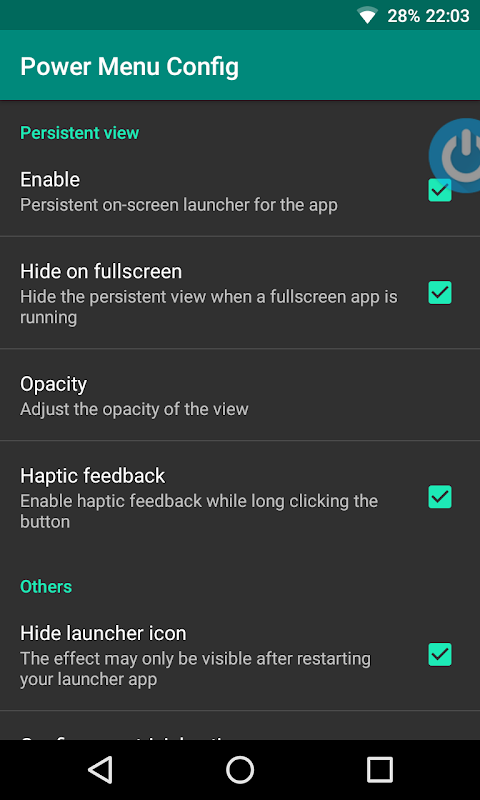 Anda dapat mencari sumber dalam repo GitHub di https://github.com/nkming2/power-menu, laporan bug juga harus pergi ke sana