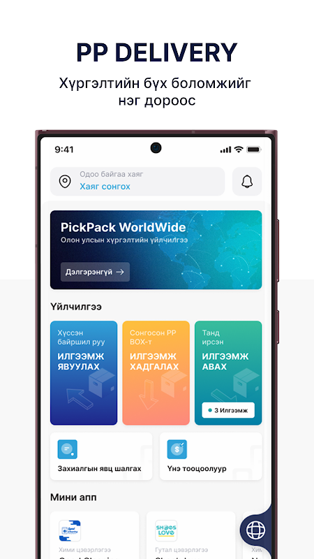 PP Delivery апп-ыг ашиглан бүх аймаг сумд руу энгийн болон хуваарьт хүргэлтийн захиалга үүсгэхто боломжтой.