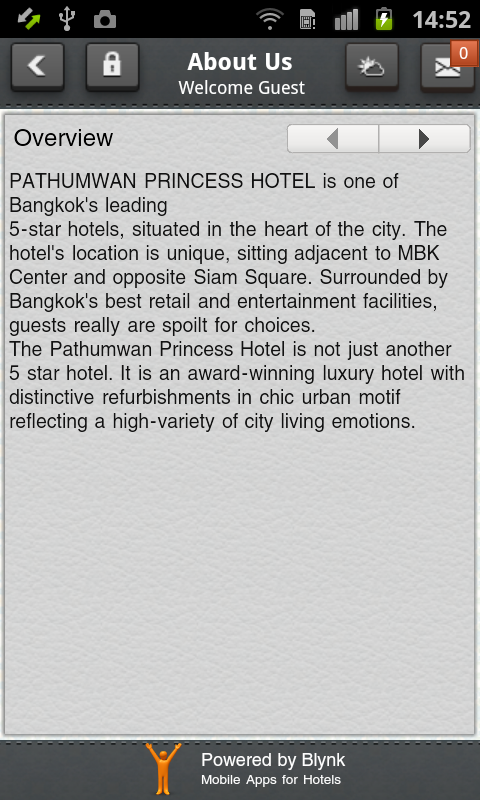 Android device users can explore PATHUMWAN PRINCESS HOTEL by downloading this app. On checking in to the hotel, guests can make call back requests and place orders directly from the app. Guests can use the app to always stay in touch with PATHUMWAN PRINCESS HOTEL.